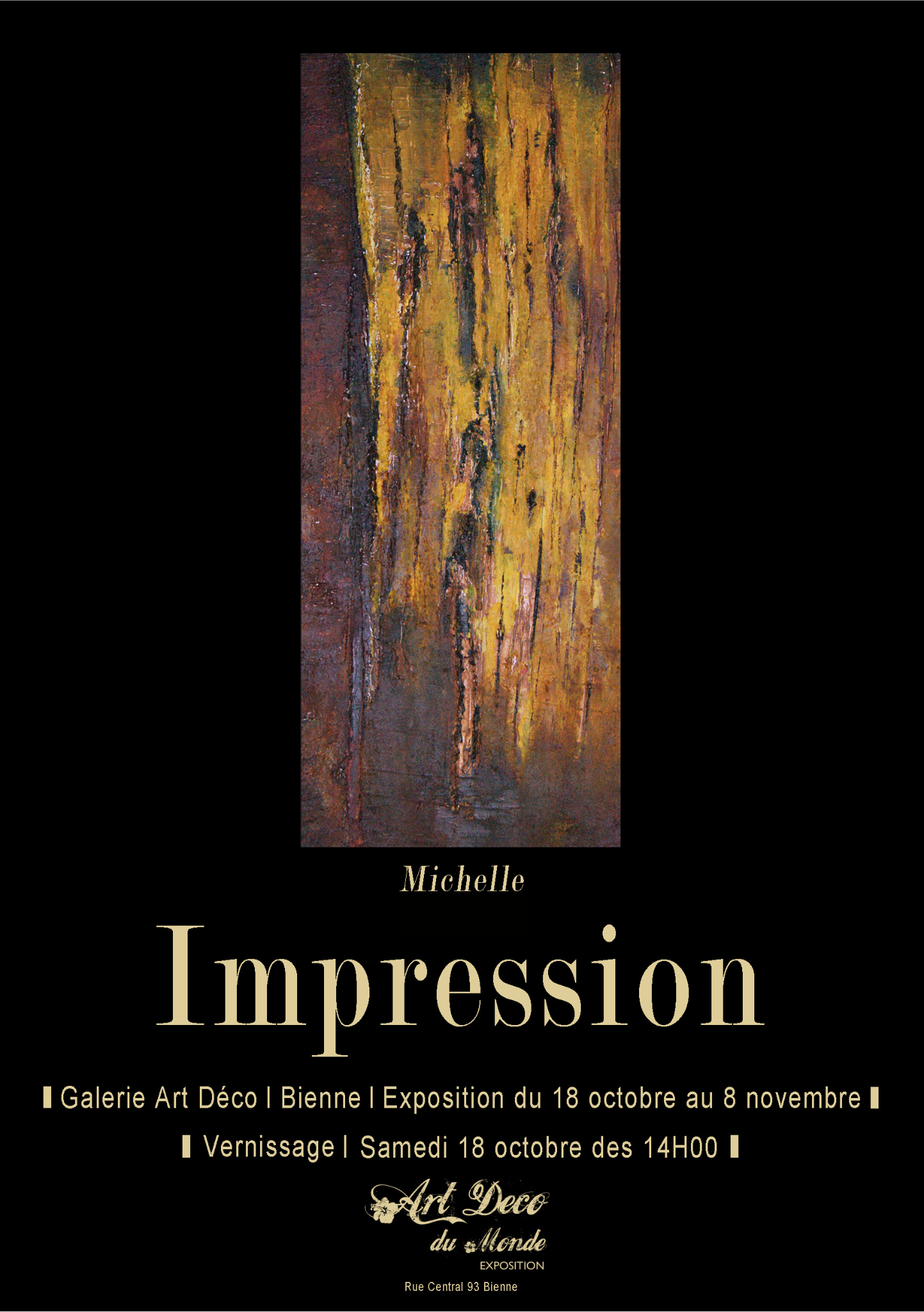 Exposition Nuance Péristyle de l’Hotel de ville, Neuchâtel, Exposition du 09 au 15 octobre 2011 Exposition Impression Galerie Art déco, Bienne, Exposition du 18 octobre au 8 novembre 2014 Exposition Fusion Combles de l’ancienne couronne, Rue Haute 1, 2502, Bienne, Exposition du 16 au 28 septembre 2024 Lien instagram